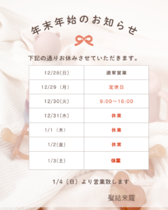 年末年始のお知らせ